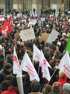 Sure enough, as I came around the Musée de l'Homme - ten minutes before the March was suppose to begin - I saw a little crowd, women of all ages holding various signs and flags. Were the Parisiennes suitably late or was this just not on the city's agenda I thought a wee bit disappointed?