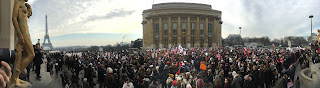 I invited Expat Girl to join me in the March which was to lead us from the Trocadero Esplanade of human rights to the Wall for Peace Monument on the Champ de Mars. Rather sheepishly she declined because she didn't feel safe to walk with such a big crowd of people. I respect that. The terrorist attacks had had an impact on her young life and there were things she was not prepared to do.